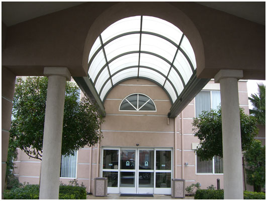 The dramatic and high-end effect of glazed awnings will enhance your home or business without extensive remodeling costs. For your business, glazed awnings will quickly and economically add architectural interest, create brand identity, increase curb appeal and provide shelter from the elements. Homeowners can enjoy a fashionable upgrade to complement any architecture style, add shelter from sun and rain without blocking out light, and improve the enjoyment of your home and outdoor spaces.
